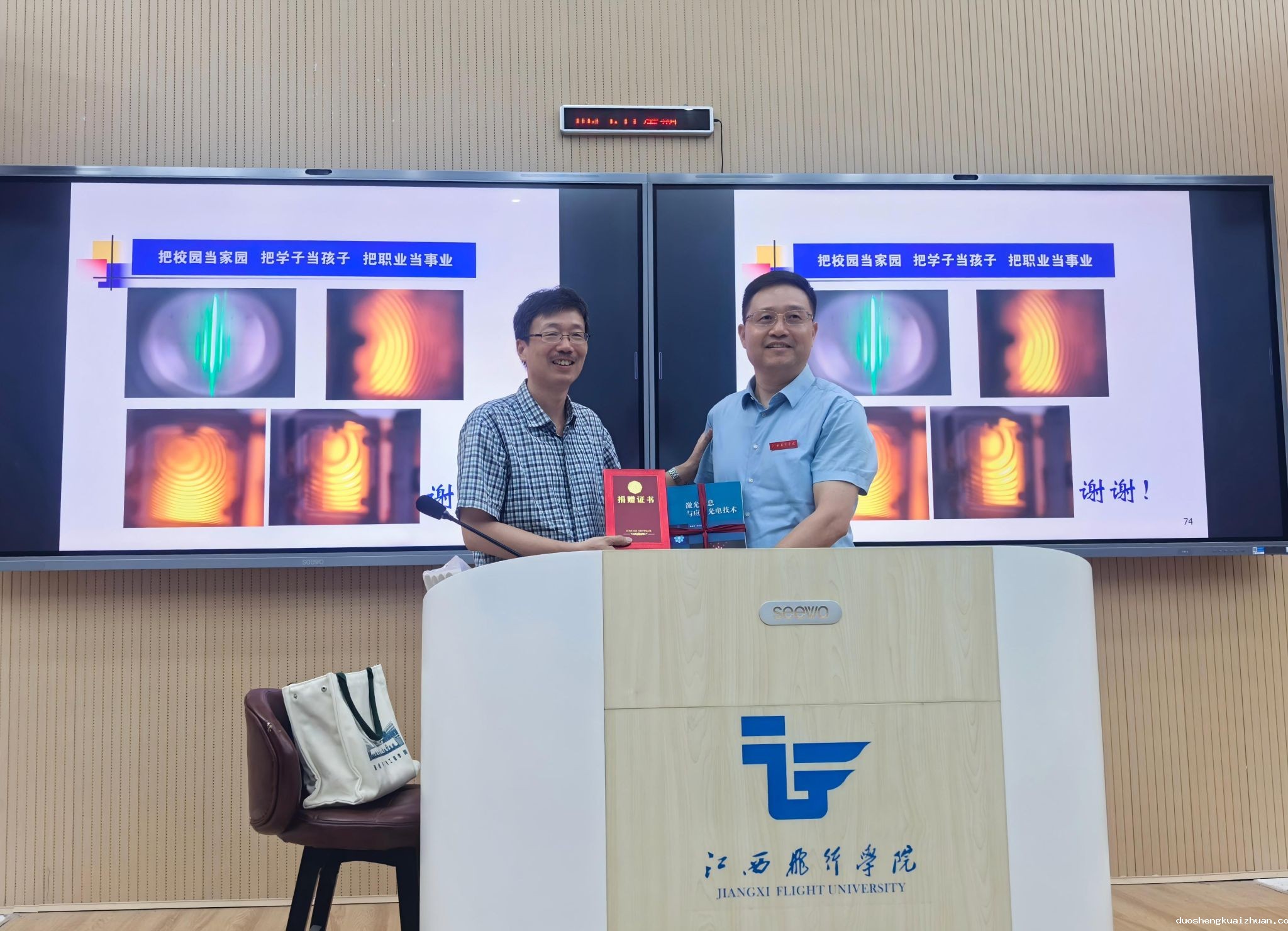 6月18日下午,学校航空机电工程学院龚勇清教授向图书馆捐赠《激光全息与应用光电技术》一书。捐赠仪式在科技楼一楼卧龙报告厅举行。滕荣华馆长代表图书馆接收捐赠,向龚勇清教授表示感谢并颁发捐赠证书。《激光全息与应用光电技术》一书,由龚勇清、何兴道两位教授编著,以激光原理、激光技术、激光器件为基础,系统阐述了激光全息技术的基础理论和应用光电技术的基本知识,并在全息图复制、全息云纹干涉技术、光折变晶体的全息存储、...